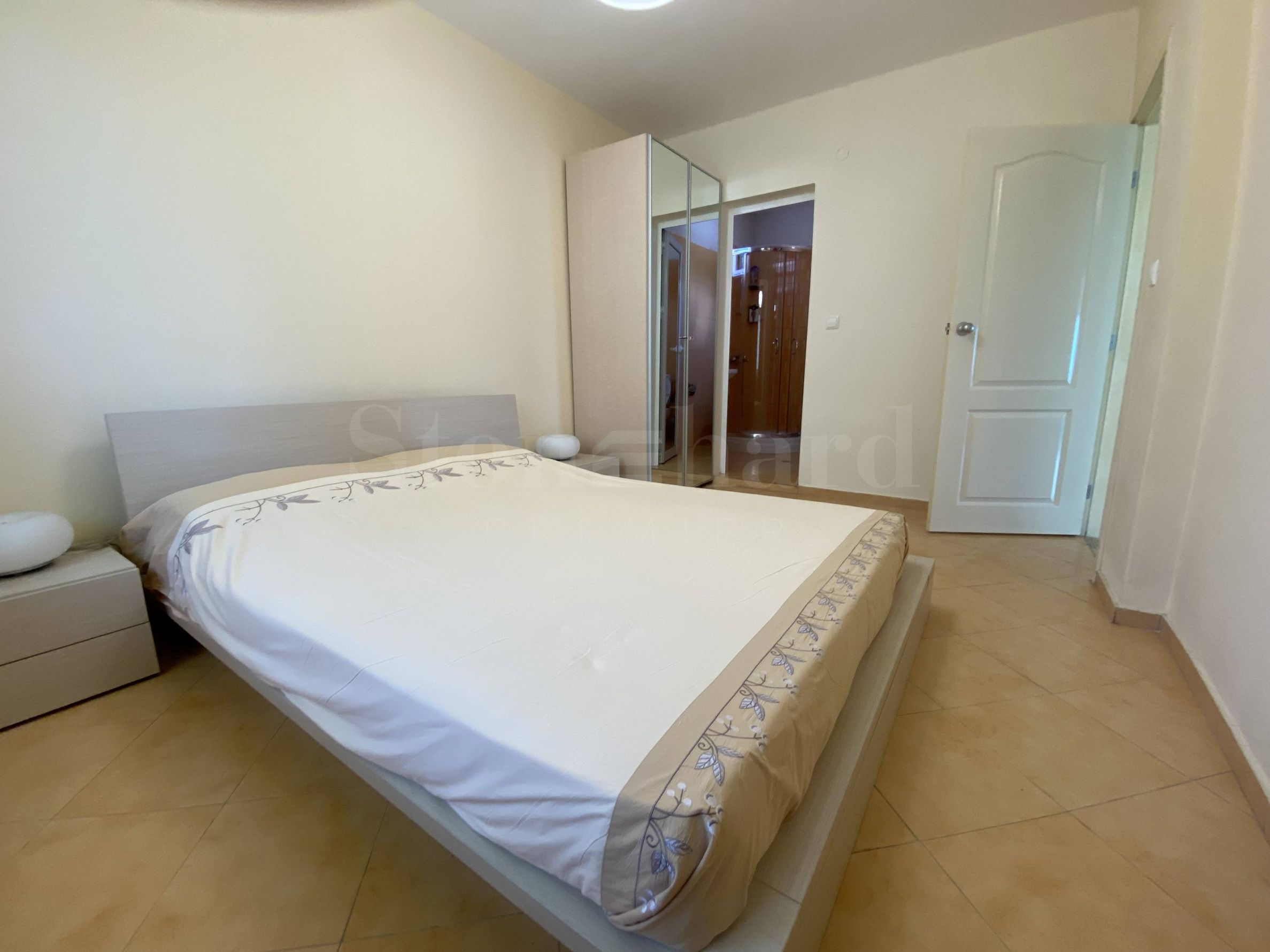 Stan je elegantan i dobro namešten, opremljen visokokvalitetnom tehnikom. Postavljene su spoljne roletne. Na terasi je montirana spoljašnja ljestvica koja vodi ka dvorištu i bazenu kompleksa. Pogodan je kako za ličnu upotrebu, sezonsku ili celogodišnju, tako i za izdavanje.