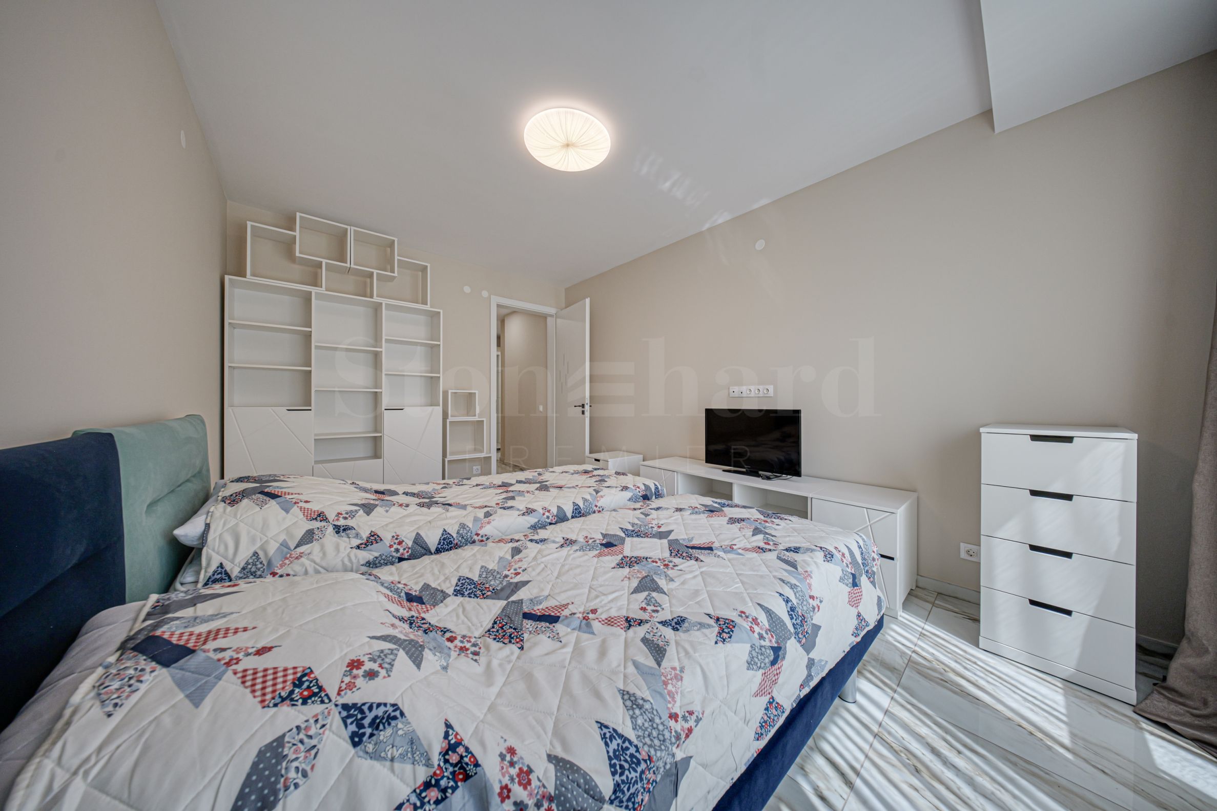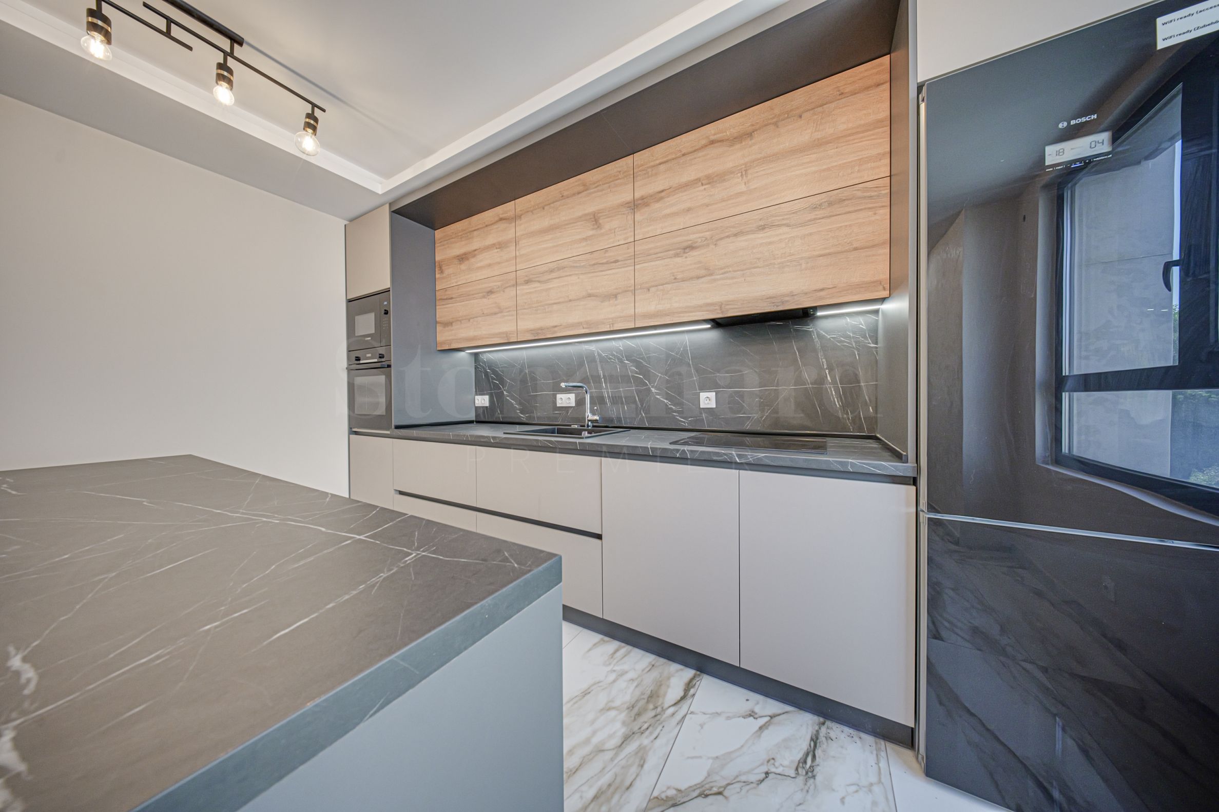 Stan je završen "ključ u ruke", sa visokokvalitetnim materijalima i elektrouređajima. Funkcionalno osvetljenje upotpunjuje moderan izgled apartmana, pažljivo osmišljeno u svakoj sobi. Podne obloge su od visokokvalitetnog granitogresa. Grejanje je putem gasnog kotla i dodatnog električnog bojlera za toplu vodu.