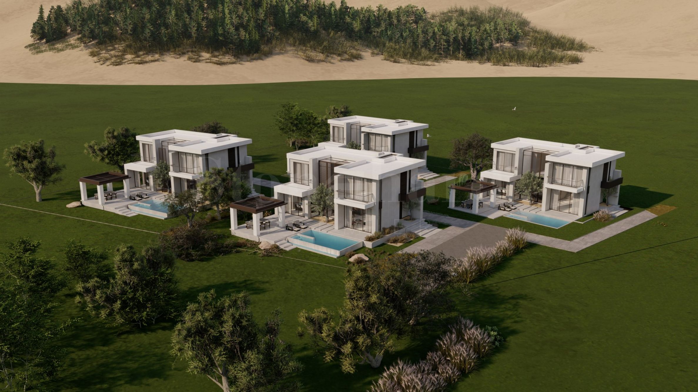 Луксузни комплекс се налази у осамљеном и мирном крају, што гарантује потпуну релаксацију и тишину за његове становнике. Састоји се од четири самостојеће куће са модерном архитектуром, коју одликују равне, чисте линије и прозори од пода до плафона, који појачавају осећај светлости, простора и слободе. У суседним двориштима изграђене су перголе и простори за опуштање - идеално место за мирне тренутке под грчким сунцем.