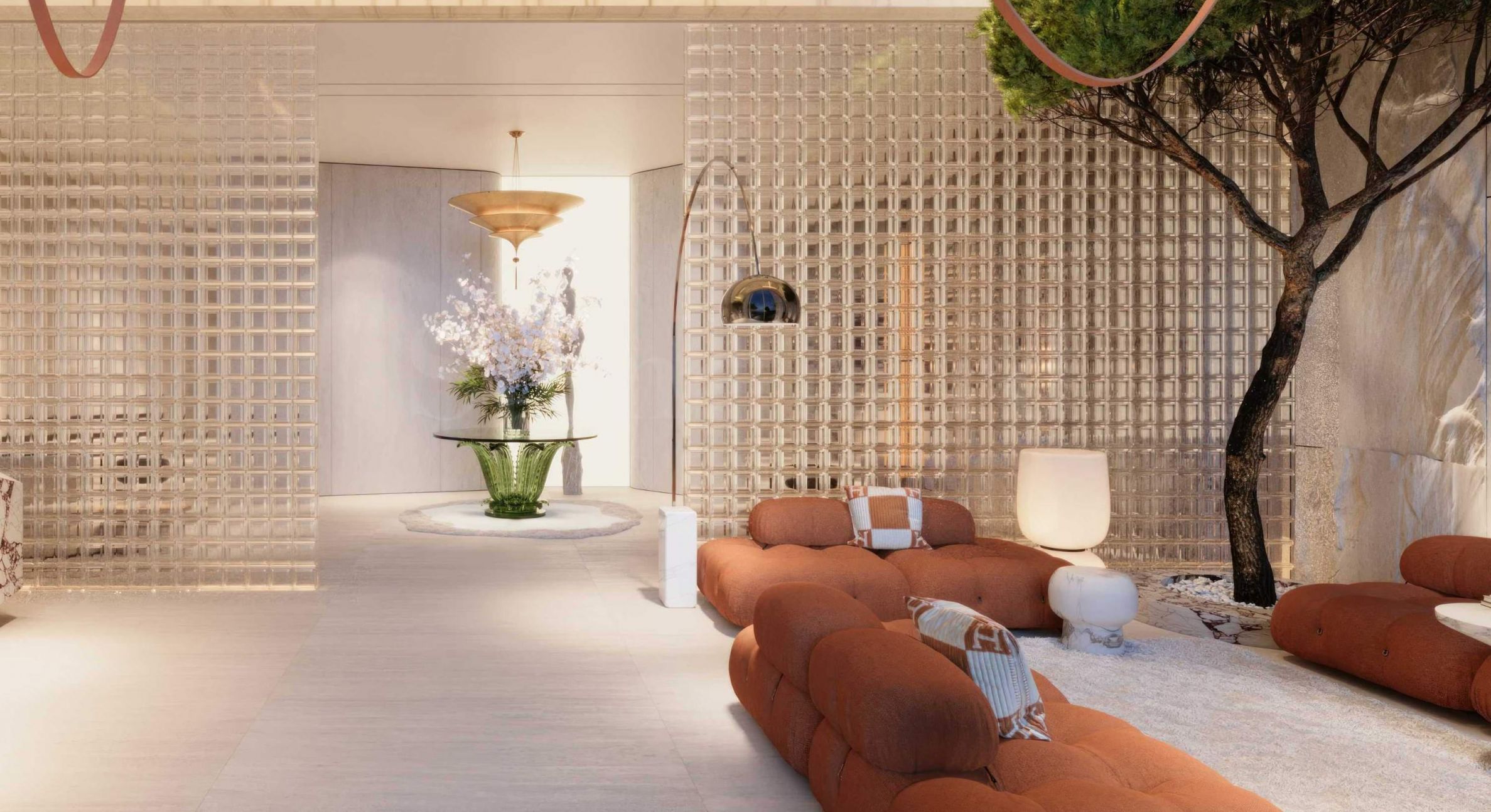 Лоби дочекује посетиоце изузетном пространошћу и импресивним ентеријером са намештајем Cassina и стакленим зидовима, чешког бренда Lasvit. У дизајну зидова коришћени су и елементи од природног камена, који не само да доприносе укупном софистицираном изгледу, већ и стварају везу са природом. Осећај удобности и удобности обавија вас у просторијама за опуштање и сусрете са пријатељима и комшијама, а кафе бар ће вас чекати сваког дана за енергичан почетак дана.