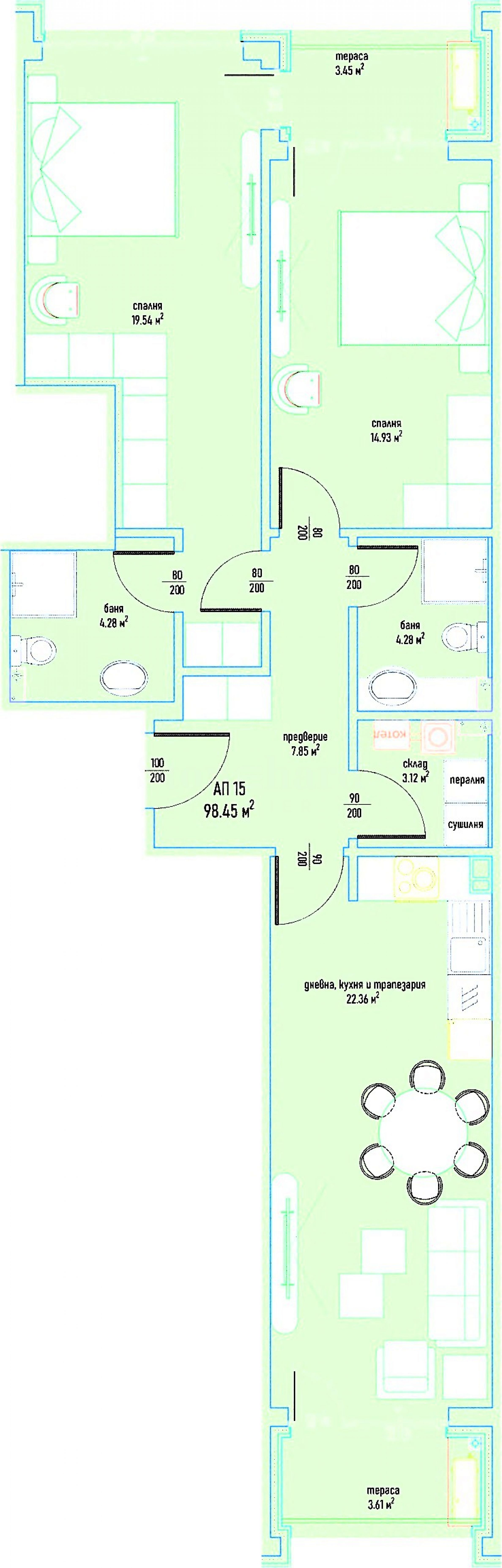 Površine stanova: 115.56 m2