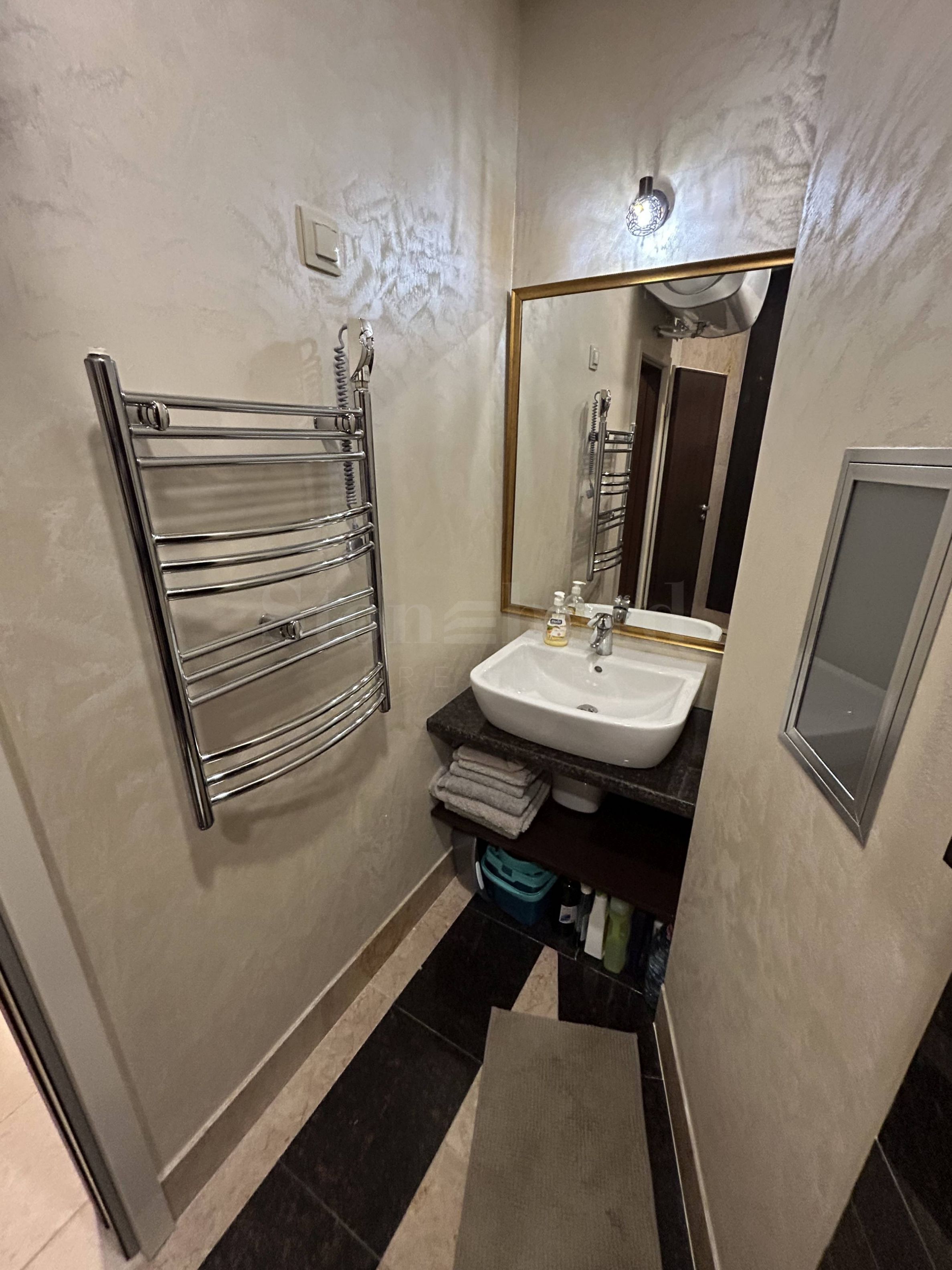 • Spavaća soba ima luksuzni dušek i mehanizam za podizanje i skladištenje prtljaga. Podovi u svim sobama su od prirodnog kamena, kao i kupatilo je obloženo podom i zidovima u potpunosti od prirodnog kamena i mermera, opremljeno tuš kabinom i velikim električnim bojlerom (horizontalnim).