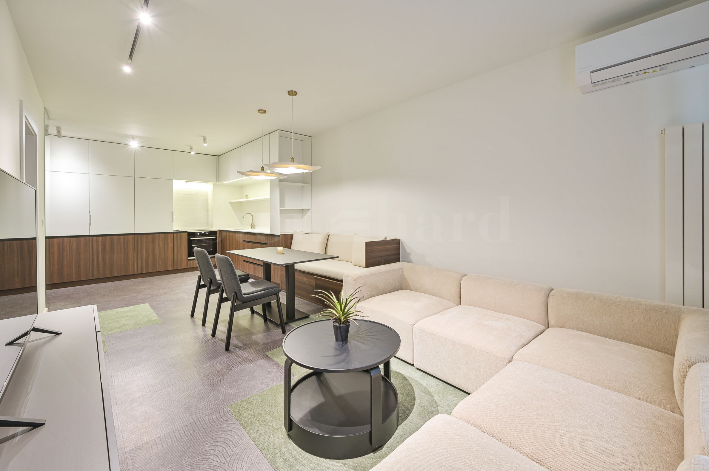 Stan ima funkcionalnu raspodelu i jednu terasu koja dodatno doprinosi osećaju prostranosti i komfora. Kuhinjski deo je opremljen ugradnim električnim uređajima renomiranih svetskih proizvođača, uključujući AEG frižider, rernu, šporet i mašinu za pranje sudova Electrolux, kao i ugradne aspiratore Electrolux / AEG. Za potpunu udobnost budućih vlasnika obezbeđene su Samsung mašina za pranje veša i 50-inčni Samsung televizor, dok je sav nameštaj i oprema pažljivo odabrana da zadovolji savremene zahteve za komforom i funkcionalnošću.